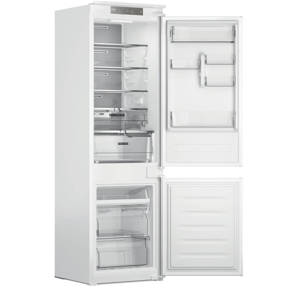 Whirlpool ugradbeni hladnjak sa zamrzivačem odlikuju: bijela boja. Staklene police s profilnim pročeljima, pružaju robusnost, eleganciju i dodatnu sigurnost. Ventilator koji osigurava nesmetan i ravnomjera protok zraka u unutrašnjosti vašeg uređaja. Jedinstvena 6th SENSE FreshControl tehnologija, koja automatski prilagođava temperaturu i nivo vlažnosti u vašem uređaju i tako osigurava dugotrajnu svježnu hrane. Praktična polica za sigurno čuvanje boca.
