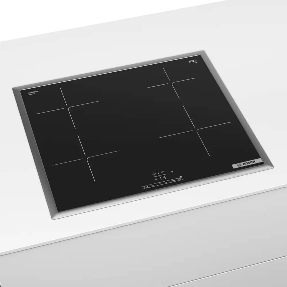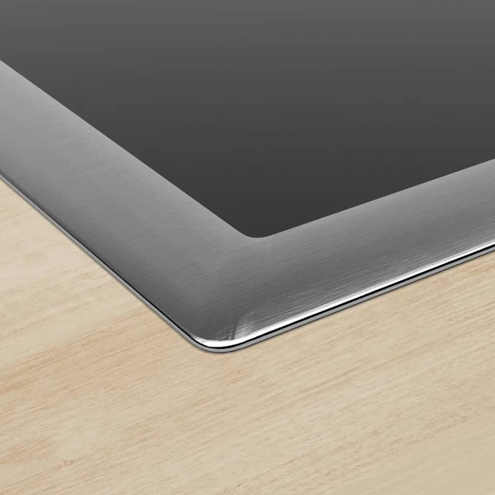 Niski okvir od nehrđajućeg čelika oko površine za kuhanje, savršeno za integriranje u već postojeće izreze radnih ploča.